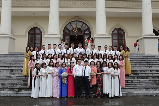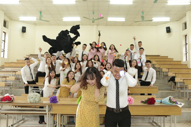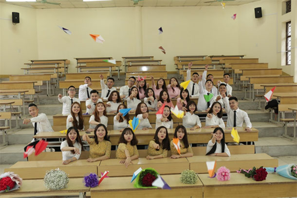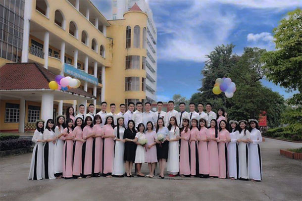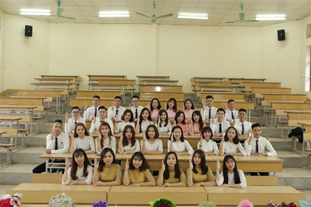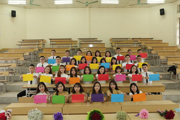 Cô giáo và sinh viên K50 Khoa GDCT trong buổi chụp kỷ yếu.