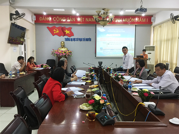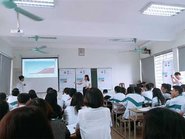 Tập thể, cán bộ, giảng viên sinh viên K50 Khoa giáo dục chính trị tại Côn Sơn- Hải Dương DẠY HỌC TRẢI NGHIỆM THEO ĐỊNH HƯỚNG NĂNG LỰC Ở TRƯỜNG TRUNG HỌC PHỔ THÔNG LƯƠNG NGỌC QUYẾN Nhằm tăng cường trải nghiệm thực tiễn giáo dụcphổ thông cho giảng viên của nhà trường, qua đó đó nâng cao năng lực giảng dạy, nâng cao chất lượng giáo dục và đào tạo gắn lý luận với thực tiễn, đáp ứng yêu cầu đổi mới đào tạo giáo viên và yêu cầu đổi mới giáo dục phổ thông. Từ ngày 22 đến 31 tháng 10 năm 2018, trường Đại học Sư phạm – ĐHTN đã cử 6 đồng chí giảng viên đến nghiên cứu thực tế chuyên môn tại trường THPT Lương Ngọc Quyến, thành phố Thái Nguyên. Trong thời gian làm việc tại trường, ngoài hoạt động dự giờ, thăm lớp, sinh hoạt tổ, nhóm chuyên môn, các thầy cô đã tiến hành xây dựng, thiết kế các hoạt động giáo dục gắn với đặc thù của lứa tuổi THPT. Trong đó, đặc biệt đáng lưu ý là sự phối kết hợp giữa các thầy cô tổ bộ môn Xã hội của trường THPT Lương Ngọc Quyến với 2 đồng chí giảng viên trường Đại học Sư phạm là T.S Đỗ Văn Hảo – khoa Sư phạm Địa Lý với T.S Nguyễn Thị Hường – khoa Giáo dục Chính trị trong xây dựng kịch bản dạy học và tổ chức thành công một giờ học trải nghiệm tích hợp với chủ đề: Học sinh phổ thông với vấn đề bảo vệ chủ quyền biển đảo Việt Nam. Kết thúc giờ học trải nghiệm, các em học sinh vô cùng hào hứng đề xuất với các thầy cô trong Ban Giám hiệu nhà trường và các thầy cô trong tổ bộ môn cần tăng cường hơn nữa các giờ trải nghiệm, tạo điều kiện và cơ hội để các em ngoài trau dồi tri thức bộ môn còn được thể hiện và phát huy sở trường, năng lực của bản thân, phát hiện và bồi đắp nhằm đưa ra những định hướng đúng đắn cho lựa chọn nghề nghiệp của bản thân sau này. Tiết học trải nghiệm qua đi để lại nhiều ấn tượngsâu sắc và ý nghĩa. Bản thân mỗi thầy côtrong đoàn thực tế,các thầy cô trong tổ Xã hội rút ra nhiều bài học quý báu trong hiết kế và tổ chức một giờ tdạy rải nghiệm. Hy vọng trơng thời gian tiếp nối,sự kết hợp và đồng hành của tổ bộ môn Xã hội - trường THPT Lương Ngọc Quyến với các khoa chuyên môn của trường Đại học Sư phạm – Đại học Thái Nguyên sẽ đem tới những giờ học lý thú, bổ ích. Chúc cho mối quan hệ giữa hai đơn vị ngày càng bền chặt. Chúc cho hai thương hiệu giáo dục ngày càng bền vững và toả sáng.
