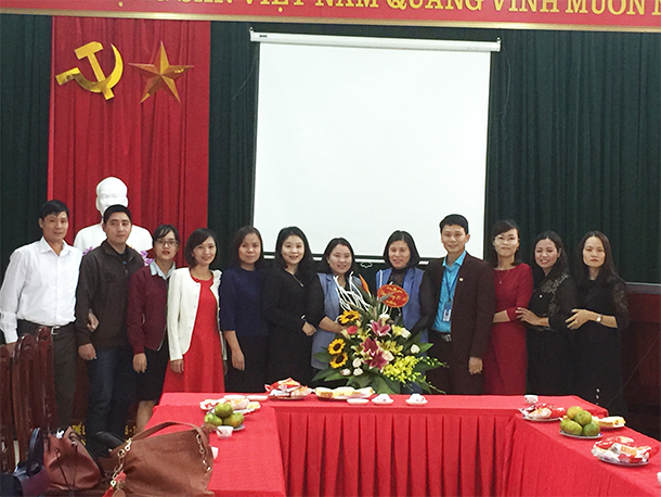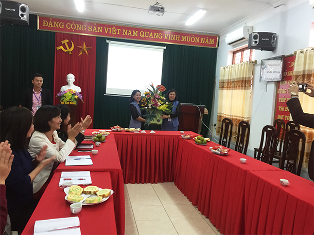 TS. Nguyễn Thị Khương Phó rrưởng khoa GDCT tặng hoa cho giáo viên trường THPT Phú Bình- Huyện Phú Bình- Tỉnh Thái Nguyên nhân ngày phụ nữ Việt Nam 20-10
