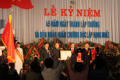 Hiệu trưởng Hứa Đức Dương trong ngày kỷ niệm 15 năm thành lập Trường (1966 - 1981)