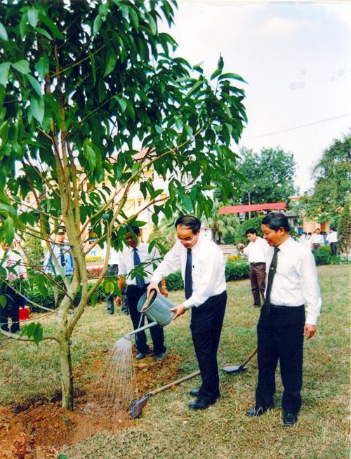 Phó Thủ Tướng, Bộ Trưởng Bộ GD-ĐT Nguyễn Thiện Nhân thăm Trường và trồng cây lưu niệm