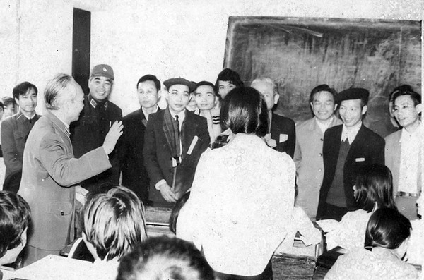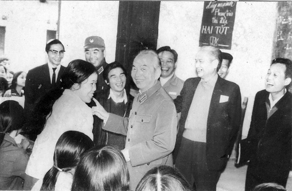 Đại Tướng Võ Nguyên Giáp trò chuyện với giảng viên và sinh viên ngay tại lớp học