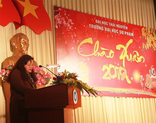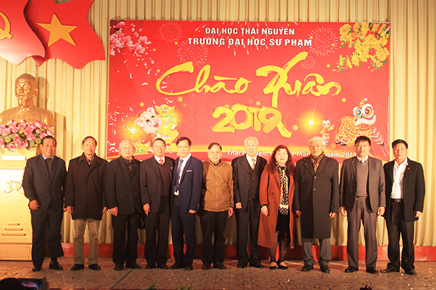 Tham dự chương trình có Ban Giám hiệu Nhà trường, Chủ tịch Hội đồng Trường, Chủ tịch Công đoàn Trường; BCH Đoàn Thanh niên, Hội sinh viên, Lãnh đạo các đơn vị cùng toàn thể cán bộ viên chức và người lao động; Các nhà giáo nguyên là lãnh đạo Trường qua các thời kỳ, các nhà giáo được nghỉ chế độ trong năm 2018.Trong lời phát biểu khai mạc chương trình, PGS.TS Nguyễn Thị Tính - Ủy viên Ban Thường vụ Đảng ủy, Phó Hiệu trưởng phụ trách Trường Đại học Sư phạm đã vui mừng điểm lại những kết quả nổi bật mà Nhà trường đạt được trong năm 2018 đồng thời gửi lời chúc mừng năm mới tới các đồng chí nguyên là lãnh đạo Nhà trường qua các thế hệ cùng toàn thể đội ngũ cán bộ viên chức và người lao động của Nhà trường.