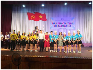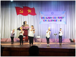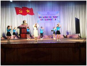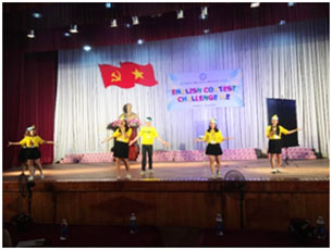 | Phần thi Chào hỏi của đội “Lazy Frog” đến từ các lớp Tiểu học Tiếng anh | Phần thi Chào hỏi của đội “Cortina Tiger” đến từ lớp Tiếng Anh K51 |