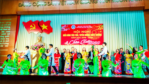 Tiếp sau Hội nghị điển hình tiên tiến và tuyên dương khen thưởng năm học 2018-2019, gala chào xuân Canh tý 2020 với những tiết mục văn nghệ đặc sắc do các cán bộ viên chức Nhà trường biểu diễn.