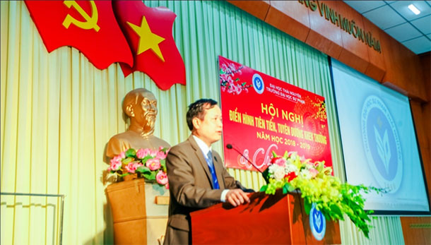 PGS.TS Mai Xuân Trường - Bí thư Đảng ủy, Hiệu trưởng Nhà trường phát biểu chào mừng, bày tỏ lời cảm ơn gửi tới cán bộ viên chức, người lao động, các giảng viên và người học đã giữ gìn sự đoàn kết, nỗ lực cao nhất giúp Nhà truờng hoàn thành xuất sắc các nhiệm vụ chính trị của năm 2019. Bước sang năm 2020, đồng chí kêu gọi mỗi thầy cô giáo, mỗi cán bộ viên chức cần ý thức rõ hơn trách nhiệm của mình trước Nhà trường, không ngừng học tập, bồi dưỡng nâng cao trình độ năng lực chuyên môn, tích cực đổi mới phương pháp giảng dạy, khắc phục mọi khó khăn hoàn thành tốt nhiệm vụ của mình từ đó giúp Nhà trường hoàn thành các mục tiêu đề ra của năm 2020. Đồng chí cũng gửi lời cảm ơn sâu sắc đến các đồng chí nguyên là lãnh đạo Nhà trường qua các thời kỳ đã luôn ủng hộ, quan tâm giúp Nhà trường phát triển.