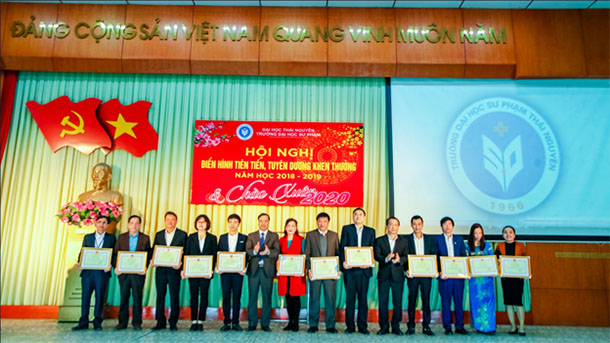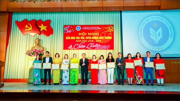 Tại Hội nghị, GS. TS Phạm Hồng Quang - Tỉnh ủy viên, Bí thư Đảng ủy, Chủ tịch Hội đồng, Giám đốc Đại học Thái Nguyên đã trao cờ thi đua xuất sắc của Uỷ ban Nhân dân Tỉnh Thái Nguyên cho tập thể Trường Đại học Sư phạm – Đại học Thái Nguyên năm học 2018-2019; Cờ thi đua xuất sắc của Bộ giáo dục và Đào tạo cho Tập thể Phòng Đào tạo – Trường Đại học Sư phạm – Đại học Thái Nguyên năm học 2018-2019. GS. TS Phạm Hồng Quang và PGS. TS Mai Xuân Truờng cũng trao Kỷ niệm chương vì sự nghiệp giáo dục cho 12 cá nhân đang công tác tại Nhà trường; trao Chiến sỹ thi đua cấp Bộ cho 8 cá nhân; Bằng khen của Bộ truởng Bộ giáo dục và Đào tạo cho 38 cá nhân đang công tác.