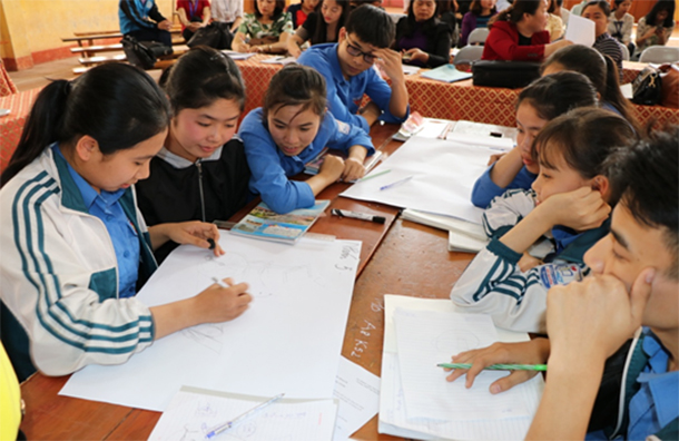 Các em học sinh THPT Ngô Quyền sôi nổi thảo luận đưa ra ý tưởng thiết kế theo chủ đề giáo dục STEM